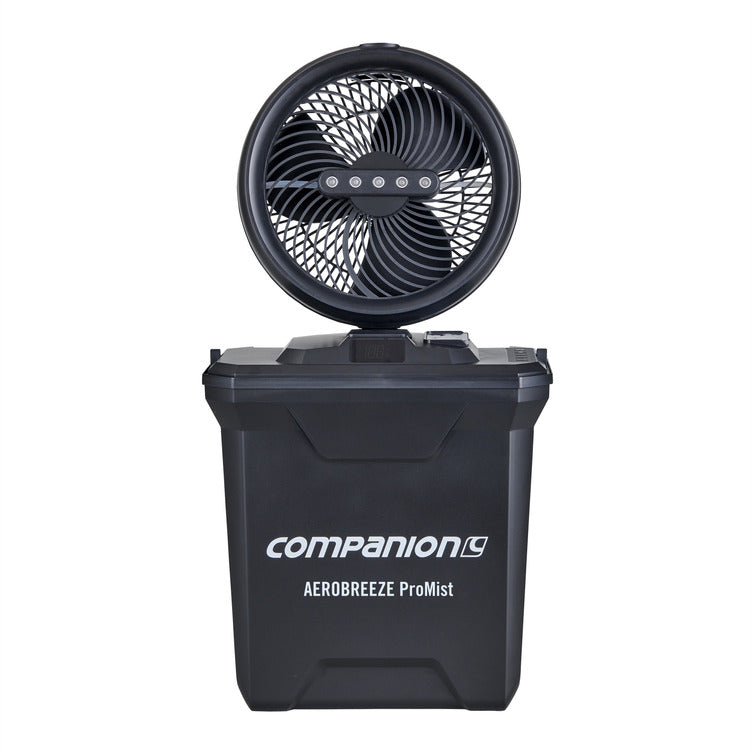 When the summer heat becomes relentless, staying cool is a breeze with the powerful Aerobreeze ProMist Fan. Designed for ultimate comfort, it features a 25cm diameter fan with 45 or 90-degree oscillation, giving you wide coverage, and offers both fan-only and misting functionality to suit any environment. With four fan speeds and three misting levels that can be used in any combination, you’re in complete control of your cooling experience. The large 10L capacity water tank holds an impressive amount of water while remaining water-wise, consuming as little as 1.4L per hour on the high misting setting. Easily adjust settings directly on the unit or with the convenient remote control, and set the built-in timer for up to 8 hours of uninterrupted comfort. A massive 20,000mAh battery ensures long-lasting use, while the durable ABS plastic construction stands up to tough conditions. When it’s time to pack up, the fan flips upside down and stores neatly inside the tank with a built-in handle for effortless transport. The Aerobreeze ProMist  Fan is your ultimate companion for beating the heat all summer long.